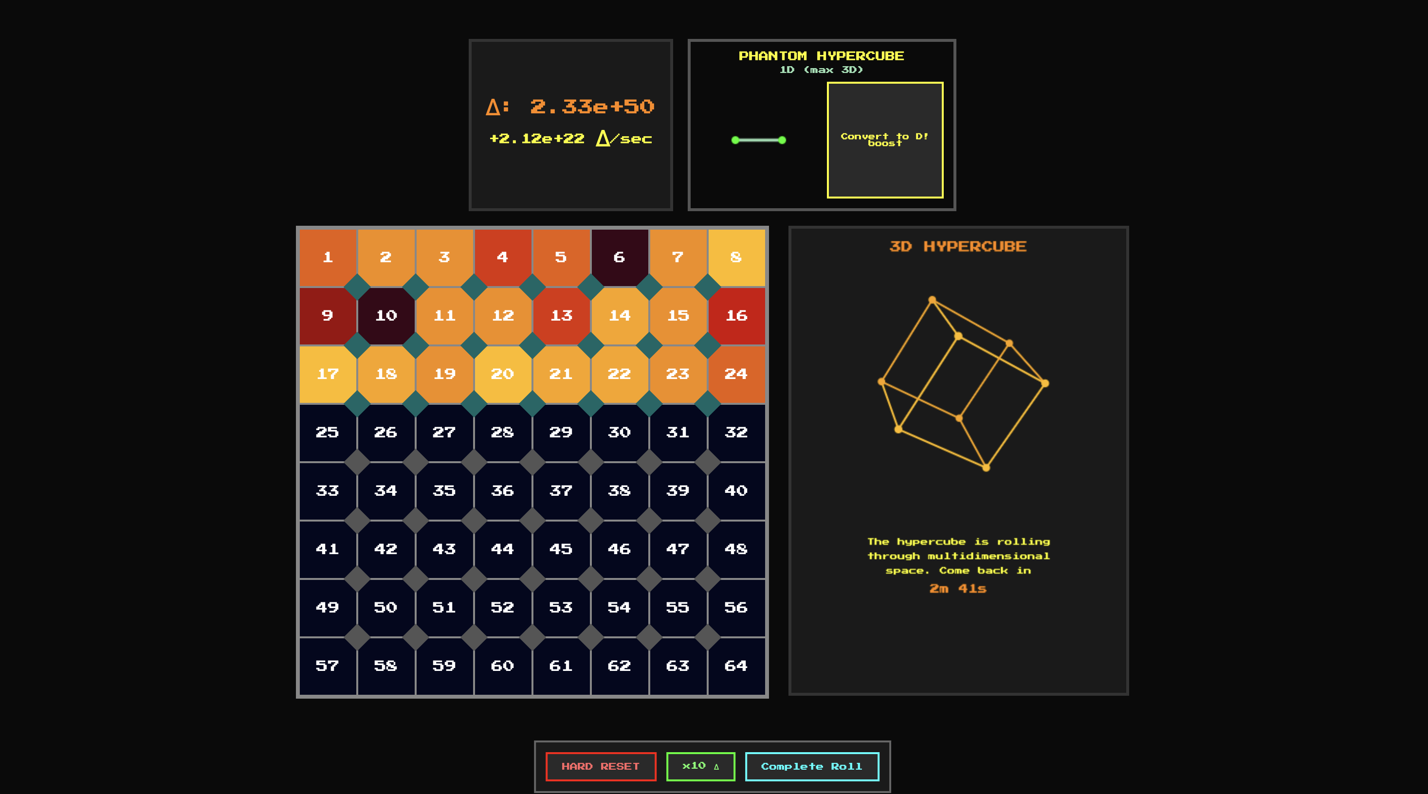Minimalistic idle game about increasing dimensions of hypercubes with puzzle elements.